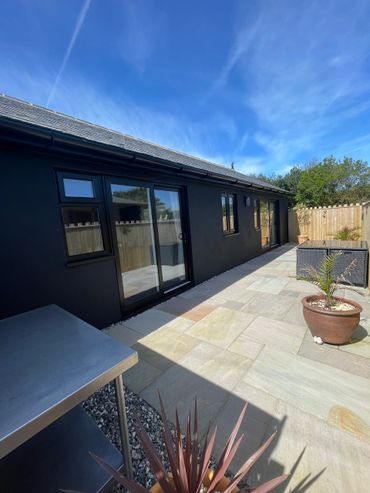Bumblebee Barn is a newly renovated contemporary holiday home for up to 4 guests in 2 bedrooms. It has a light and airy feel and its modern fittings give it a luxurious touch. The main bedroom has a boutique hotel atmosphere with its super-king size bed, en-suite toilet, walk in wardrobe and large patio doors that open up to the outside patio area. Tea and coffee facilities and luxury teddy robes are also provided so you can relax in the comfy bed watching the flat screen TV or soak up the morning sunshine before you start your day of exploring Cornwall. The second bedroom is a twin room with two single beds. There is ample storage and a bookcase containing books for all ages. The modern bathroom features a large shower with a rainfall head and separate hand held shower head. Towels are provided and again, there is ample storage for all your requirements.